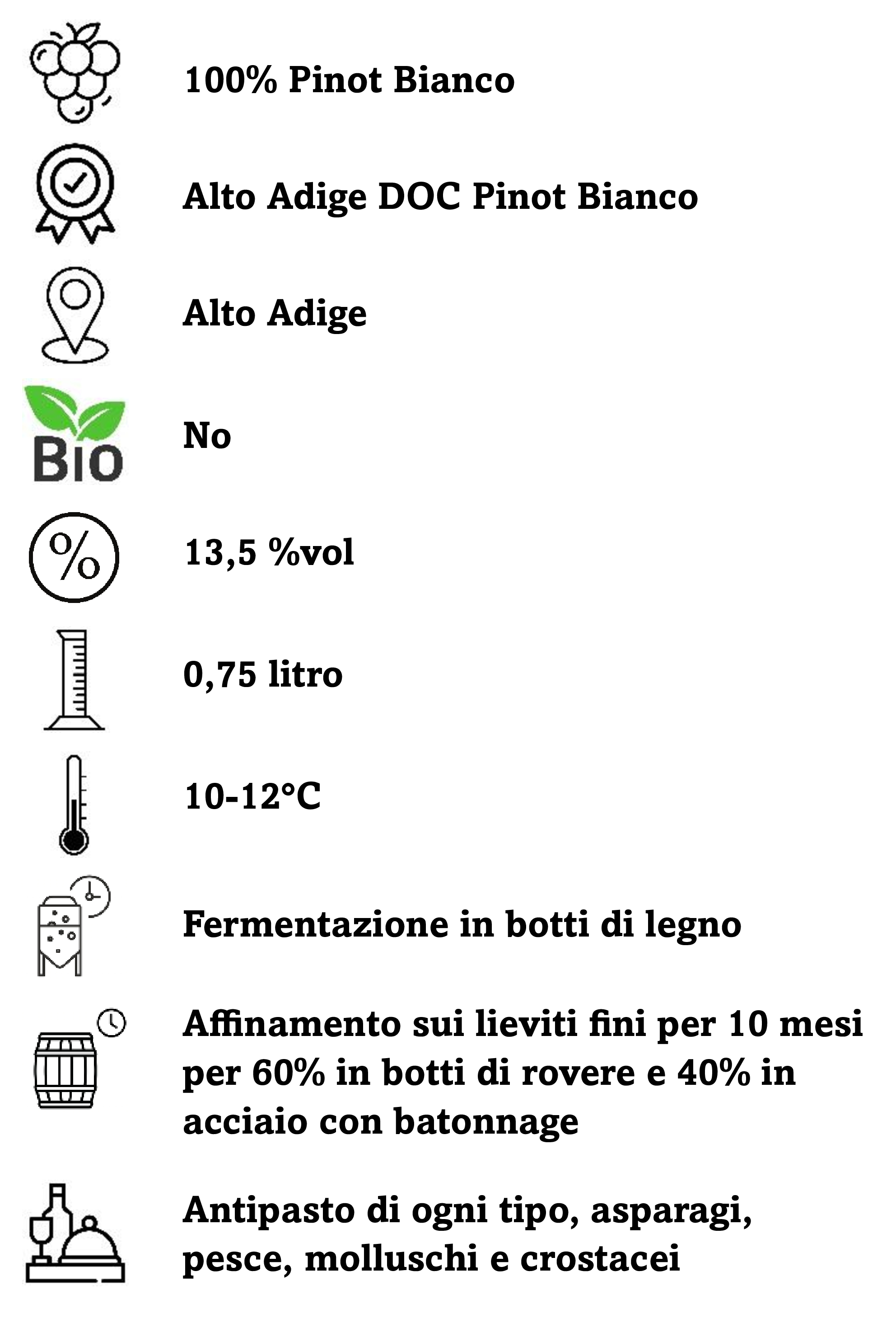 Il colore va dal giallo verdognolo al giallo chiaro. I profumi sanno leggermente di mela e di limone. Il vino è sottolineato dalla sua sapidità in bocca e dalla sua mineralità.