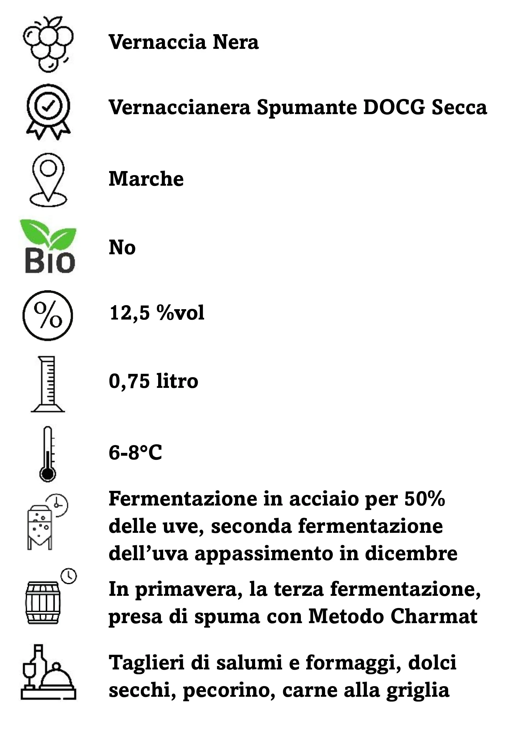 DOCG vino spumante rosso dolce 100% Vernaccia Nera, una frizzante esperienza a tripla fermentazione da antica tradizione contadina. Presa di spuma secondo metodo Martinotti.
