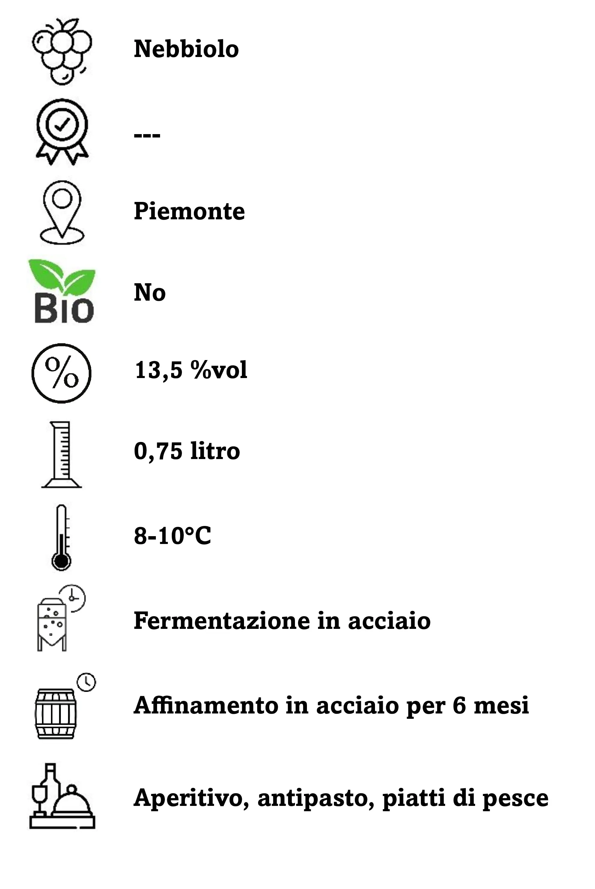 Colore rosato vivo scarico con lievi riflessi salmone. Olfatto netto ampio con note di ciliegia, rosa e lampone. Gusto medio corpo sapido con finale gradevolmente acidulo.